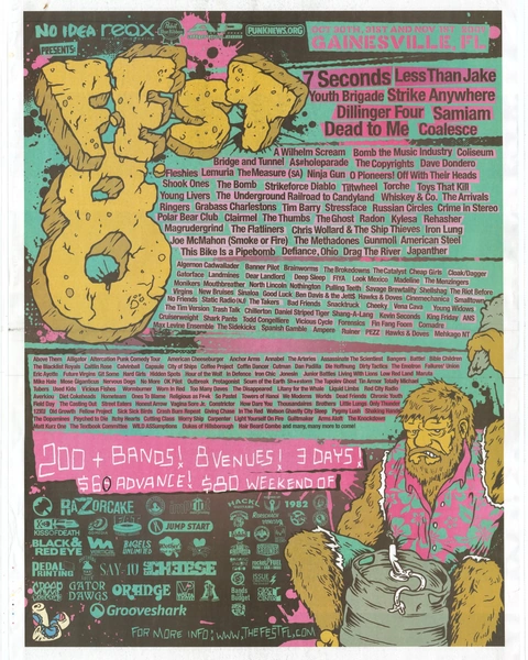THE FEST is an independent multiple-day, multiple-venue underground music festival held annually in Gainesville, FL with support from the fine folks from VISIT GAINESVILLE, ALACHUA COUNTY. Established in 2002 with only 60 bands, four stages, and two days, THE FEST has experienced a massive growth rate and now is three days long, 15+ venues and over 350 bands, comedians and professional wrestlers.